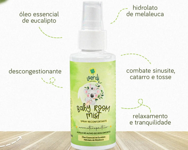 Baby Room Mist Spray Reconfortante Aromaterapêutico com Hidrolato de Melaleuca e Óleo Essencial de Eucalipto